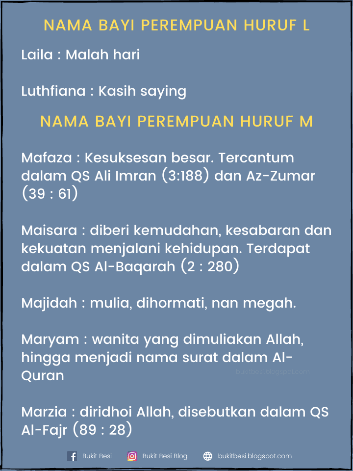 Nama Bayi Perempuan Dalam Alquran Huruf M Tak heran jika sekarang ini nama. Nama bayi islam perempuan m maaijah yang berombak, bergelombang maaiyah kebersamaan maali tinggi maamunah dipercaya mabrukah dapat berkah madaniya kemajuan. Rumaisa juga menjadi nama lain sirius, bintang yang paling terang sinarnya di. 40 nama bayi perempuan cantik berawalan huruf r. Agar memudahkan kamu dalam memilih nama bayi perempuan yang sesuai.